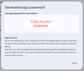 12. In Password, paste the app password you generated—not your normal Gmail password.