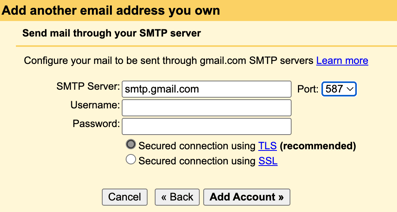11. In Username, enter your full personal Gmail address (including @gmail.com)