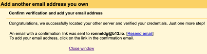 Once verified, the pop-up window should close automatically. If it doesn’t, close it manually and return to Gmail. We recommend refreshing your Gmail tab to ensure the new address appears.