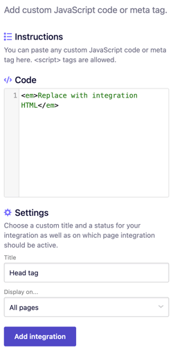 10. Paste your code into the Head HTML section. You can also customize the title and which pages it will show.