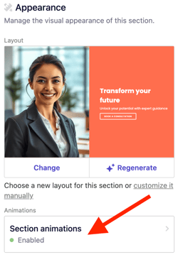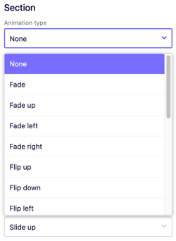 Animations add subtle movement as visitors scroll, helping draw attention to key content without overwhelming the page. You can apply animations to an entire section or fine-tune how individual elements appear.