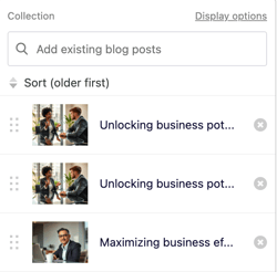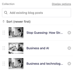 You can control how your blog posts appear in a feed using either manual or automatic sorting.