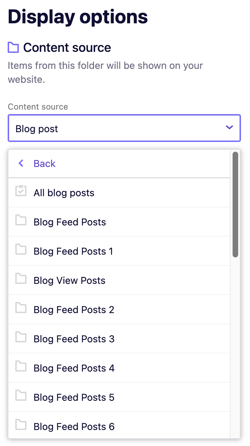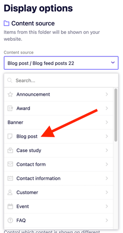 2. Under Content source, click the dropdown menu to choose your blog source.