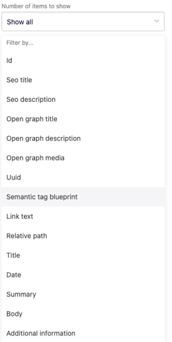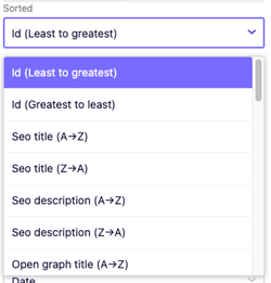 - Sort by: Predetermined list of filters you can choose from, ranging from titles, description, media, and other types of tag.