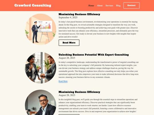 If you already have a blog feed, you can create another feed to display your existing blog posts in different ways. For example, a “Recent posts” section on your homepage or a “Featured posts” section on a service page.