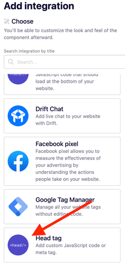 Tip: Choose Google Tag Manager or Facebook Pixel for those specific integrations.