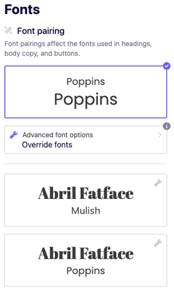 2. Choose one of the featured font pairings to apply sitewide. This updates text styles for buttons, titles, subtitles, and more.