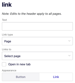 2. Adjust the Text, Link type, Links to, or Appearance settings.