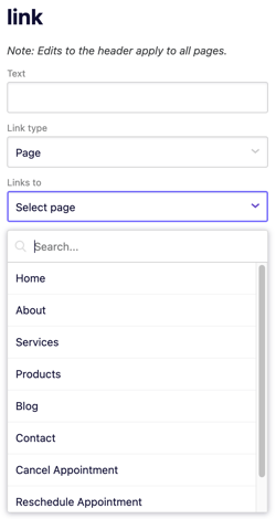 Navigation links appear in your website’s header. The header sits at the top of your site and is sometimes called the navigation bar or menu.