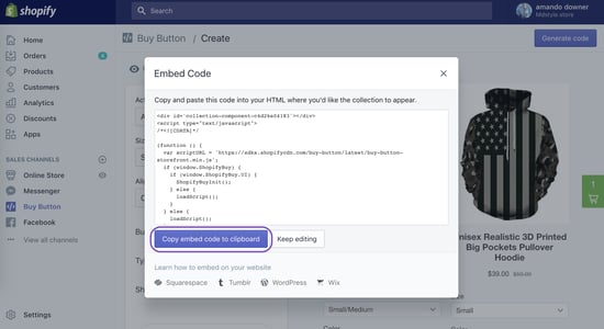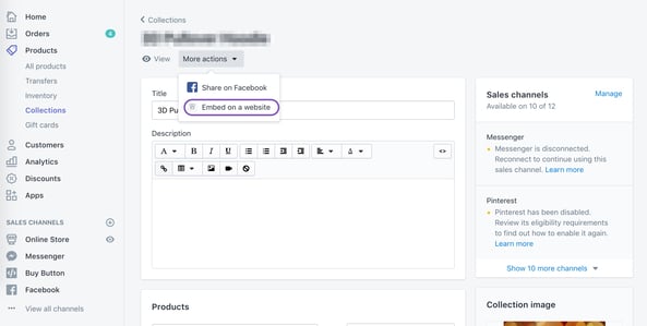 Getting your Shopify collection embed code