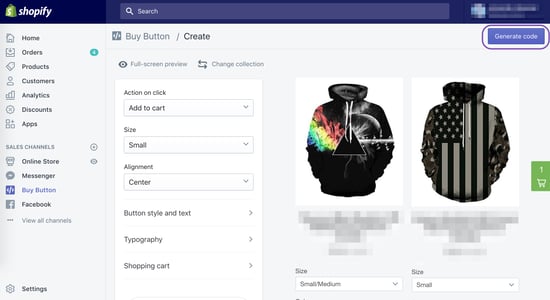 7. Once you've customized your buttons, click on Generate code on the top right hand corner.