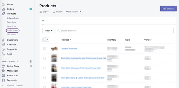 4. Click Collections. We recommend using a Collection to keep your products separate and organized. If you do not know how to make a collection, follow these instructions.
