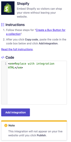 Adding a Shopify collection to your website