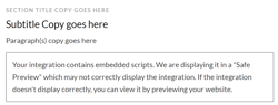 Note: You may see a temporary warning message in the editor preview where your integration appears. This message won’t show on your published website.