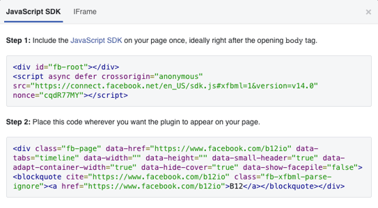 You can easily embed your Facebook Business Page into your B12 website using Facebook’s Page Plugin. This allows visitors to view your Facebook posts, follow your page, and interact with your content directly from your site.