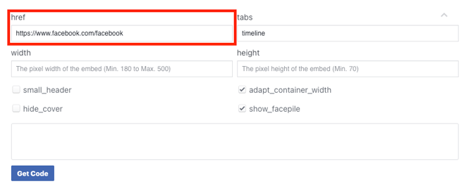 2. Under href, enter the web address (URL) for your Facebook Business Page.