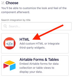 4. Choose your integration from the list or click HTML if your integration is not listed.