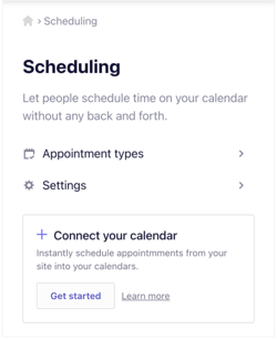 After you have confirmed your time zone, connected your calendar, set your availability blocks, and added appointment types, you are ready to add a scheduling field to a form on your website or a scheduling page.