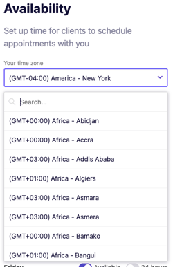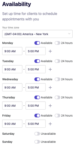 Setting your availability by adding availability blocks gives you finer-grain control over when a client can schedule an appointment with you.