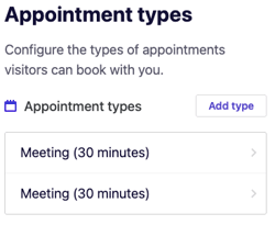 Appointment types let you set up appointments with different characteristics, such as time length, buffers, and location.