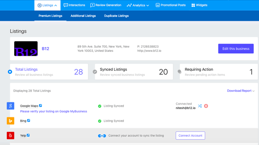 Claiming your listings lets you control how your business appears on sites like Google Maps, Facebook, Yelp, and Bing. Once claimed, your listings sync through the Listings Manager so your information stays accurate and consistent.