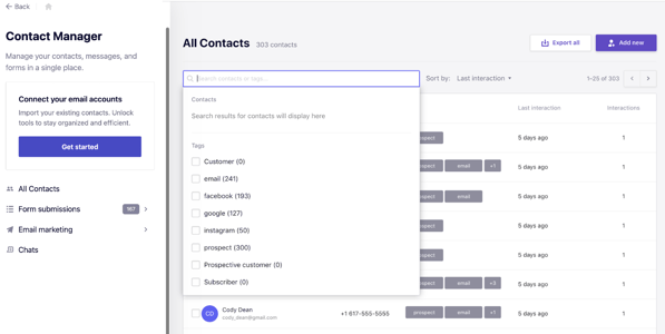 2. Review the contact’s basic information, past interactions, and assigned tags. Edit or update the contact’s details as needed.