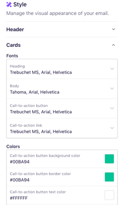 Tip: Use the Style section to adjust font size, color, and weight to match your brand’s appearance closely.