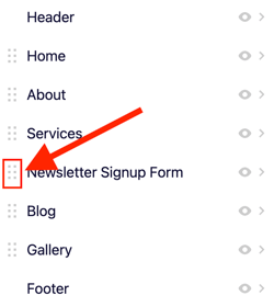 New page sections, navigation links, and other collection items (services, products, team members, testimonials, blog posts, etc.) are automatically added to the end of their collection list.