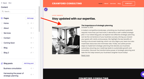 Adding a blog feed lets you publish, organize, and share posts directly on your website. You can create your feed with the AI Agent or add it manually.