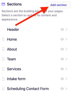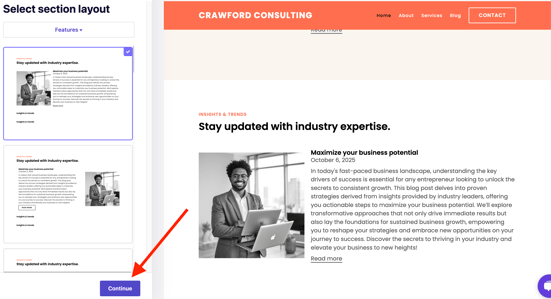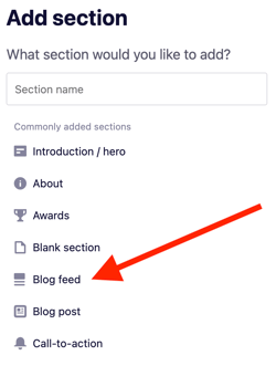 2. Select the page where you want to add your Blog Feed. Click Add section