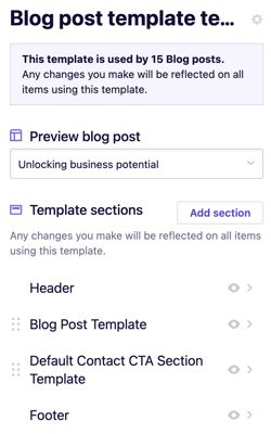 You’ll now see the sections that make up the blog post template.