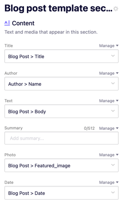 Mapping these fields ensures each blog post displays the correct content automatically.