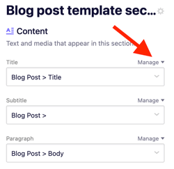 2. Click a section then under Content, click Manage beside the field you want to control.