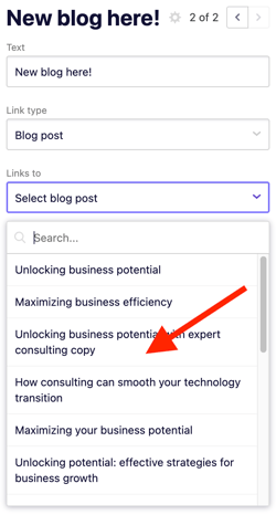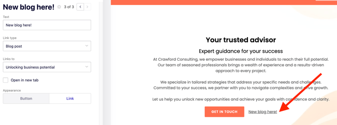 Your new link or button will now appear in the section and take visitors directly to your selected blog post.