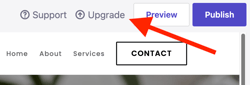 To upgrade your website, click Upgrade in the top right corner of the editor beside the preview button. Then select a plan and enter your credit card information to complete the purchase.