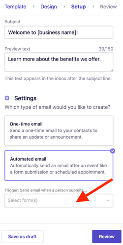 Setting up an automated email isn’t much different from setting up a one-time email.