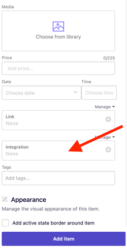 1. In the section where you plan to add your integration, click Add new [collection item].