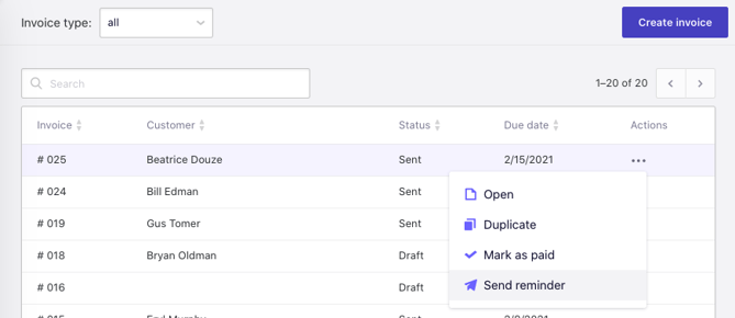 In the invoice list, click the three dots under Actions.