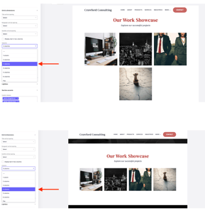 Many B12 section layouts let you control how many items appear in each row. This helps you create the look you want, whether you prefer wider images, tighter grids, or more items visible at once.