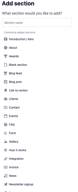 Tip: You can search for a specific type of section by typing into the 🔍 Search... field!
