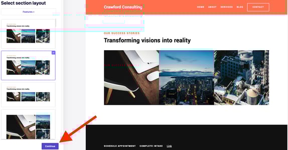 4. Choose a layout. The preview will automatically update on the right side of your screen. Click Continue