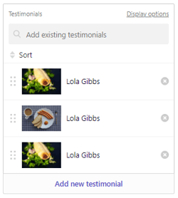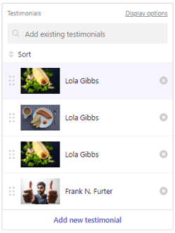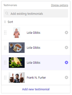 To remove a testimonial from your section, just click the ⓧ next to the item in your list of testimonials.