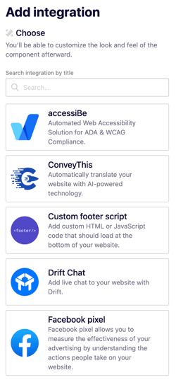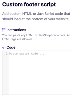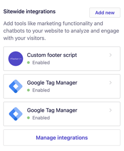 A sitewide integration or tracking code can be used for many purposes, such as adding a chat widget, installing Google Tag Manager, or connecting marketing and analytics tools.