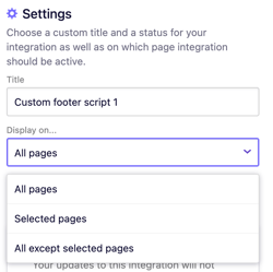 5. Give your integration a title or choose the pages where your code should be displayed.