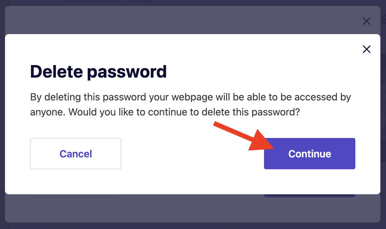 Once published, visitors will be required to enter the password before they can access the page.