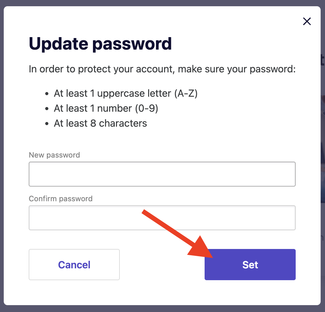 5. Enter your password under New password, then confirm it.