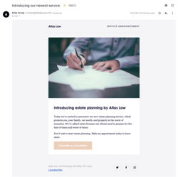 Use the Email Marketing tool to send professionally branded emails to your contacts. For customers who have just launched, we highly recommend you send an email announcing your new website to get some quick traffic. Simply select the template "Website launch", fill in the blanks, and send!