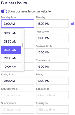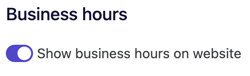 3. Scroll down to Show business hours on website and make sure it is enabled.