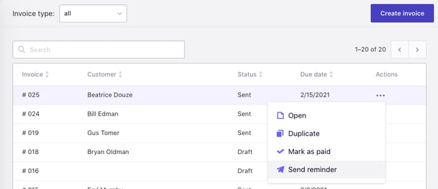 Payments and Invoicing.2. In the Actions column, click the three dots next invoice you want to remind your client about.