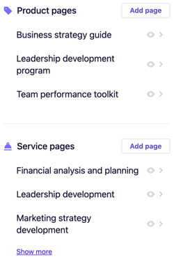 When you add a new service or product to your website, B12 automatically creates a dedicated page for it. These are called template pages.